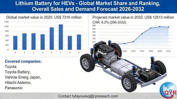 Global leading market research publisher QYResearch published the release of its latest report, "Lithium Battery for HEVs - Global Market Share, Ranking, Sales, and Demand Forecast 2026-2032". This in-depth report provides a complete analysis of the global Lithium Battery for HEVs market, offering critical insights into market size, share, demand, industry development status, and future forecasts. Whether you're a stakeholder, investor, or industry player, this report equips you with the data and strategies needed to stay ahead in a rapidly evolving market.