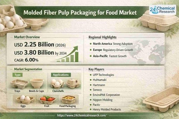 Global Molded Fiber Pulp Packaging for Food market demonstrates robust expansion, valued at USD 2.25 billionin 2026 with projections indicating growth to USD 3.80 billion by 2034, reflecting a 6.0% CAGR. This sustainable packaging solution gains traction as food manufacturers and retailers prioritize eco-friendly alternatives to plastic, driven by regulatory pressures and shifting consumer preferences.